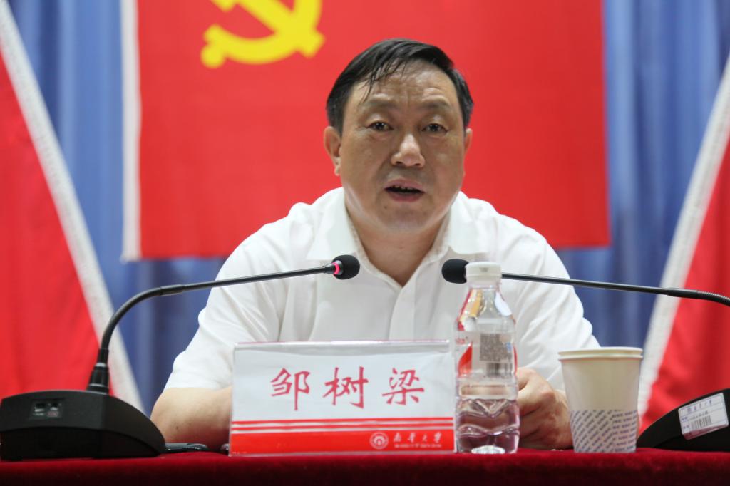 培训班上,邹树梁给毕业生党员们讲了一堂生动的党课,并寄语全体毕业生党员:一是坚定理想信念,树立远大理想。邹树梁指出,作为一名共产党员,将来无论身在何处,无论走到哪里,都要始终坚定理想信念,自觉学习中国特色社会主义理论体系,用马克思主义中国化最新成果武装自己,始终把为中国特色社会主义伟大事业奋斗终身,作为人生理想和不断追求的目标。